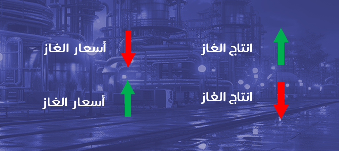 3. انتاج الغاز الطبيعي : ايضاً العلاقة عكسية بين انتاج الغاز و أسعار الغاز