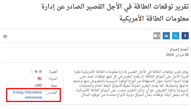 إدارة معلومات الطاقة الأمريكية (EIA) Energy Information Administration